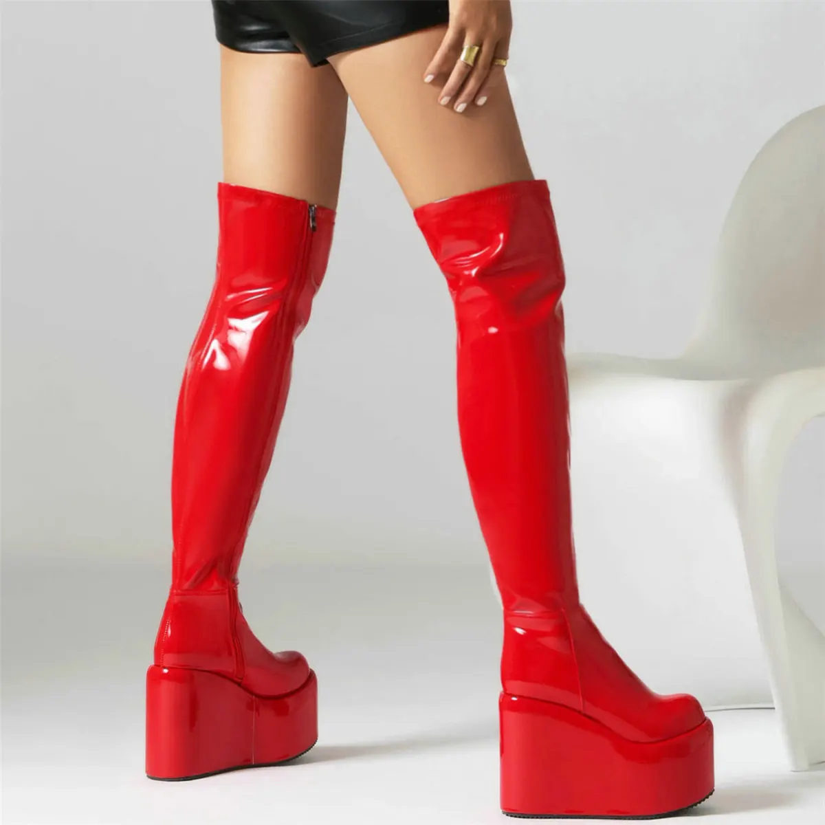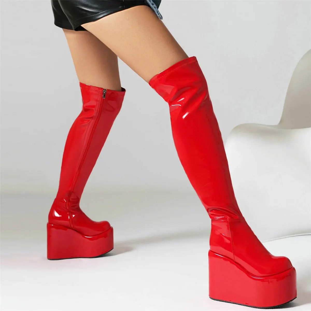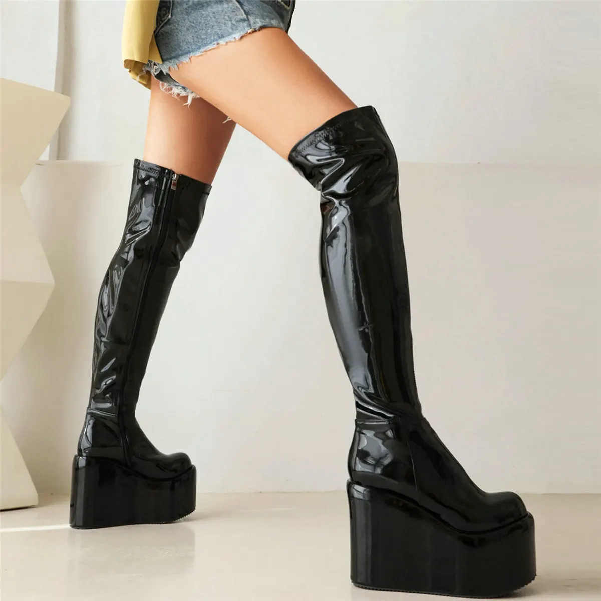 12cm High Heel Pumps Plus Size Shoes Women Big Size 45 46 47 48 49 50 Patent Leather Wedges Over The Knee Boots Fashion Sneakers