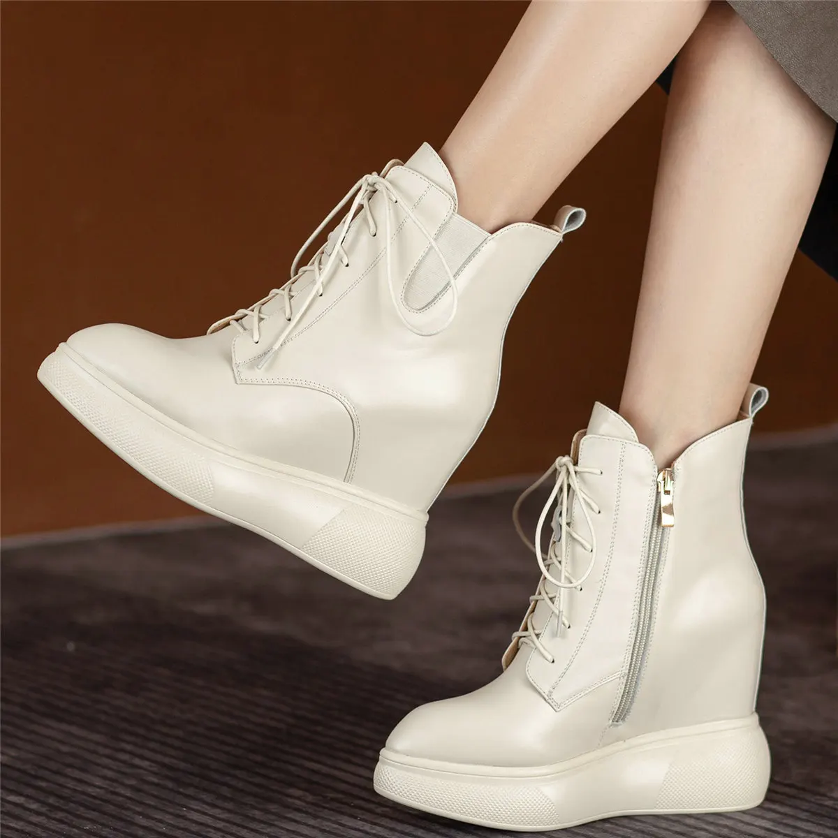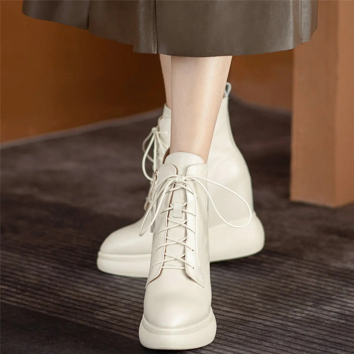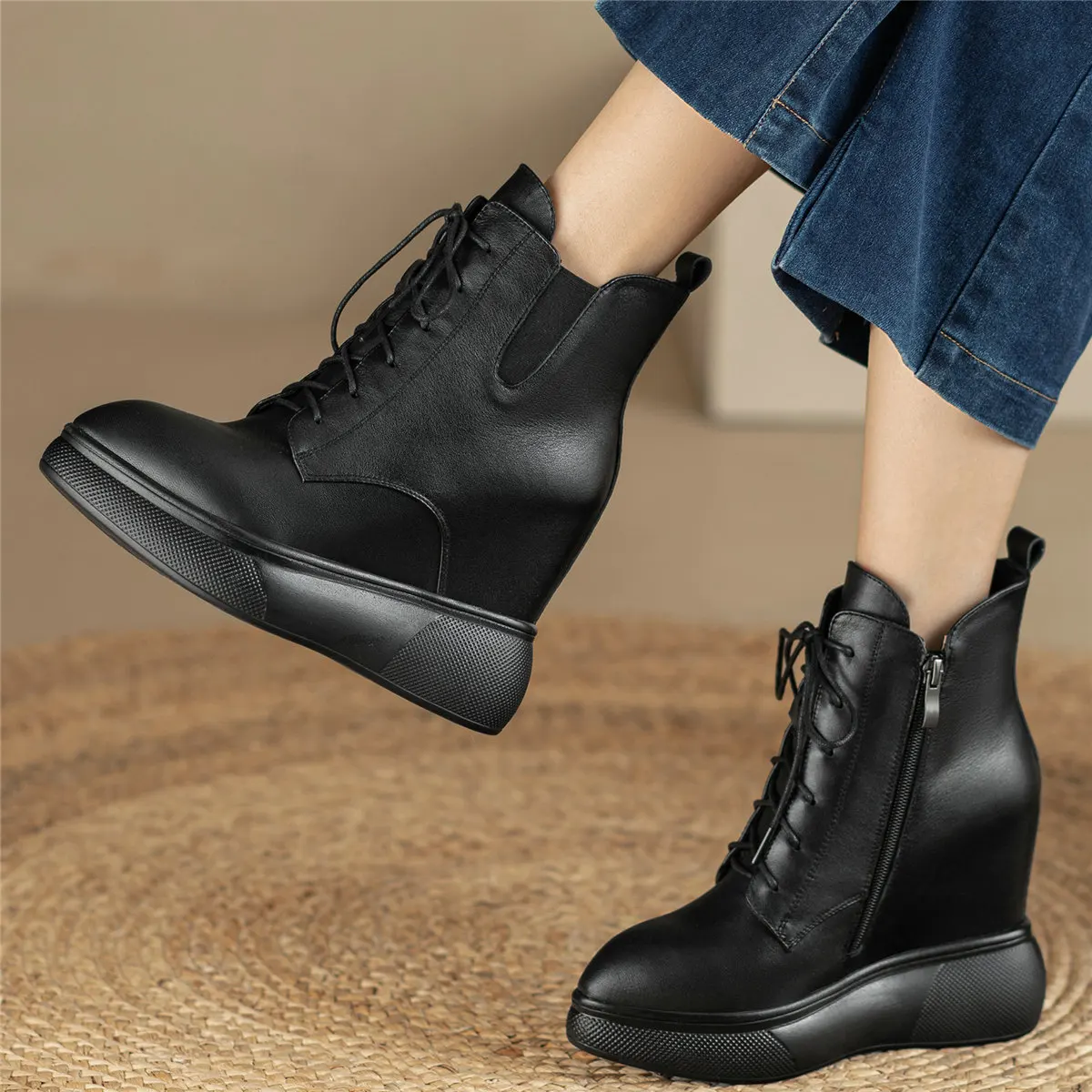 Platform Pumps Shoes Women Lace Up Genuine Leather Wedges High Heel Snow Boots Winter Pointed Toe Chunky Sneakers Casual Shoes