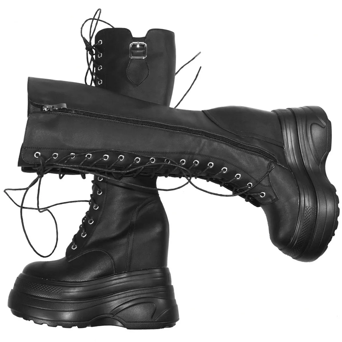 Plus Size 46 47 Snow Boots Women Genuine Leather Wedges High Heel Vulcanized Shoes Winter Platform Pumps Size 45 Chunky Sneakers