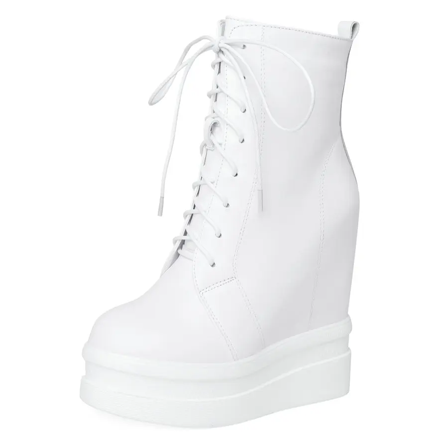 Winter Fashion Sneakers Women Lace Up Genuine Leather Wedges High Heel Snow Boots High Top Round Toe Pumps Shoes Casual Shoes